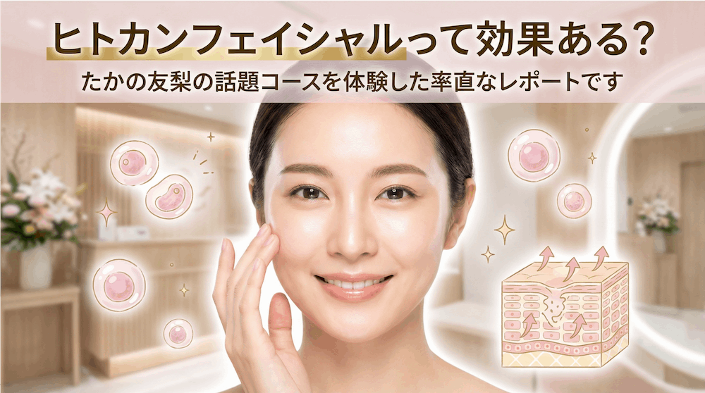そんなとき目に飛び込んできたのが、たかの友梨ビューティクリニックの「ヒトカンフェイシャル」という言葉。「ヒトカンって何?」「幹細胞って医療的な話?」「本当に効果あるの?」と疑問だらけのまま調べ始め、思い切って初回体験に申し込んでみました。